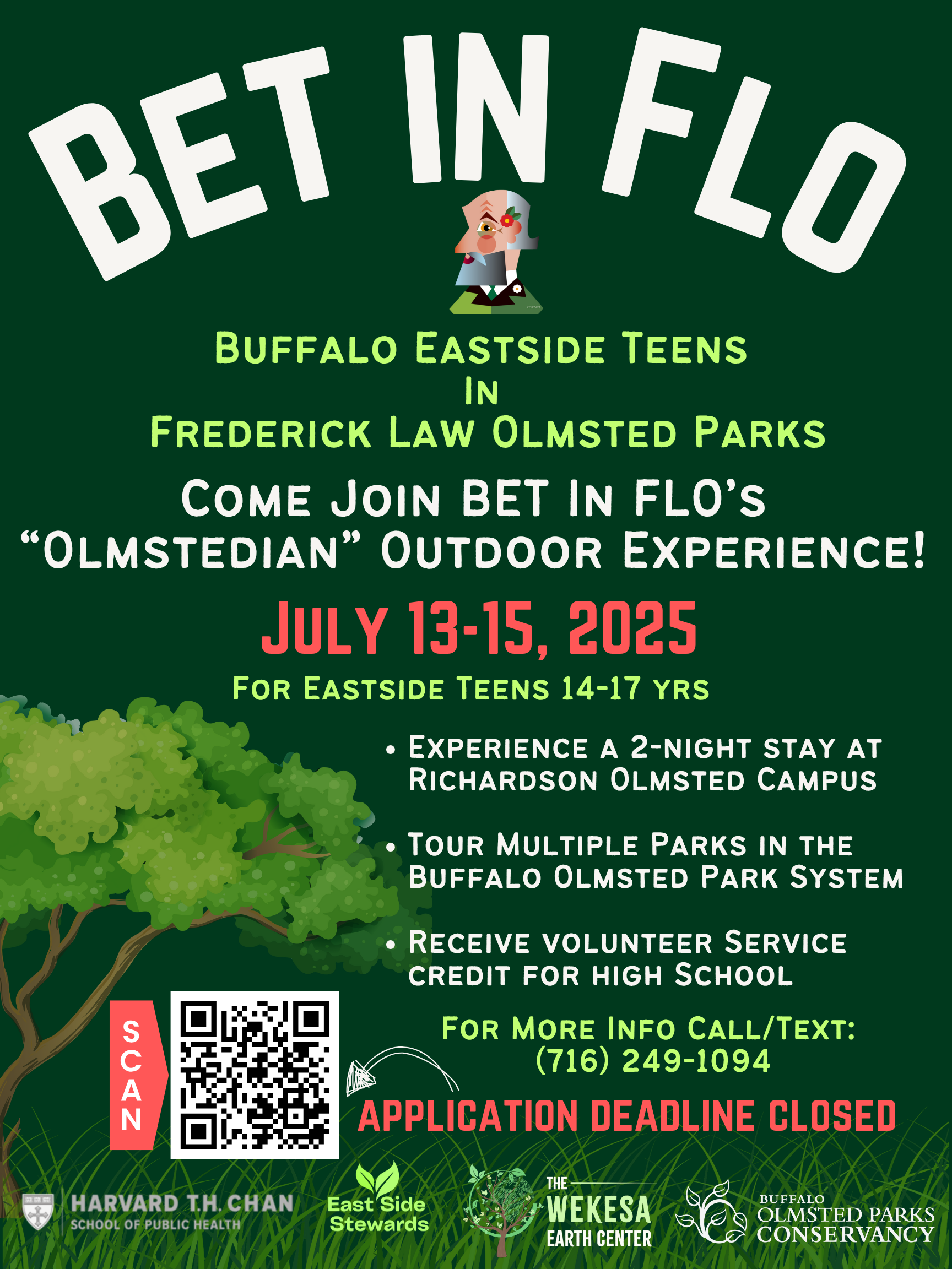 The Wekesa Earth Center partnered with the Buffalo Olmsted Parks Conservancy to lead the Buffalo Eastside Teens In Frederick Law Olmsted Parks (BET In FLO) Program.